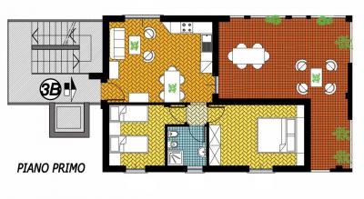 Appartamento 3B: trilocale di 94 Mq. (piano primo) 2 camere, ampio soggiorno con angolo cottura, bagno + grande terrazzo + ascensore