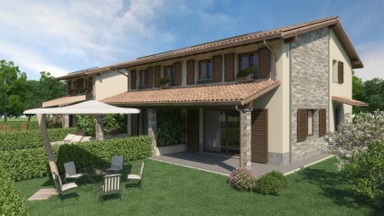 Besana Brianza: Frazione. Piccolo contesto di sole villette in fase di ultimazione, proponiamo porzione di bifamiliare di 140 mq totali disposti su due livelli abitativi e composta da: cucina abitabile, soggiorno con portico di 25 mq e accesso su giardino privato; tre camere, doppi servizi. Al piano interrato un locale taverna/hobby completamente finito e lavanderia. Box doppio in larghezza. Esterni in legno, pietra ed intonaco. Possibilità di personalizzare le finiture interne. Villetta dotata delle più moderne tecnologie: ventilazione meccanica forzata, predisposizione aria condizionata, ...