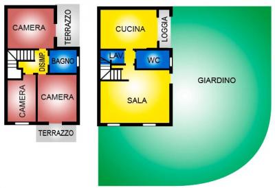 Villetta angolare nuova costruz., comp. da ingr. in soggiorno, cucina abitab. c/rispost., bagno e ripost/lavand. al p.T.; 2 camere matrim. c/balc., cameretta e bagno al 1°piano oltre giardino su 2 lati e posto auto. Zona tranq., pronta € 370000 Rif: 895014
