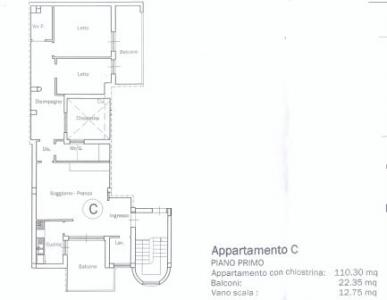 - Appartamento D: situato al primo piano di 118 mq composto da ingresso su soggiorno composto da ingresso, cucinino con zona pranzo, 2 camere da letto, 2 bagni + ampia veranda di 62 mq + mq di box auto;
