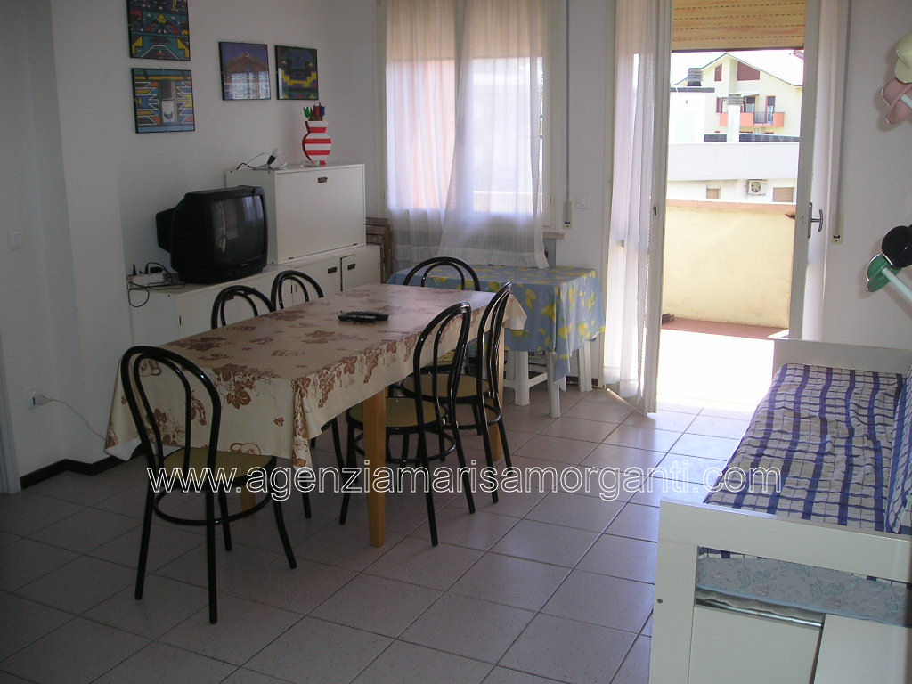 Rif. 24-B2-21 Lido Adriano, Ravenna, a 100 metri dal mare, zona centrale ben servita, per vacanze al mare, da maggio a settembre, affittasi, appartamento con parziale vista mare al 5°/ultimo piano, composto da soggiorno con divano letto, angolo cottura, disimpegno, camera matrimoniale, cameretta con 2 letti singoli, bagno con box doccia, balcone con tenda parasole, posto auto nell'area cortilizia, arredamento con lavatrice e Tv, climatizzatore. Prezzi a partire da euro 210,00 settimanali nel mese di maggio 2021.