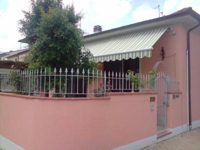 Viareggina caratterist. appena ristrutt. comp. da ingr. in soggiorno, cucinotto, sala c/camino, camera matrim., camera media e 2 bagni oltre ampia soffitta, giardino fronte-retro, locale di sgombero c/bagno e forno, casetta/lavand. e 3 posti auto.