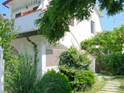 a piano terra giardino di proprieta', al primo piano terrazzo con barbecue, soggiorno, angolo cottura, bagno con doccia, al secondo camera matrimoniale mansardata abitabile. Il prezzo e' trattabile. PER INFORMAZIONI TEL