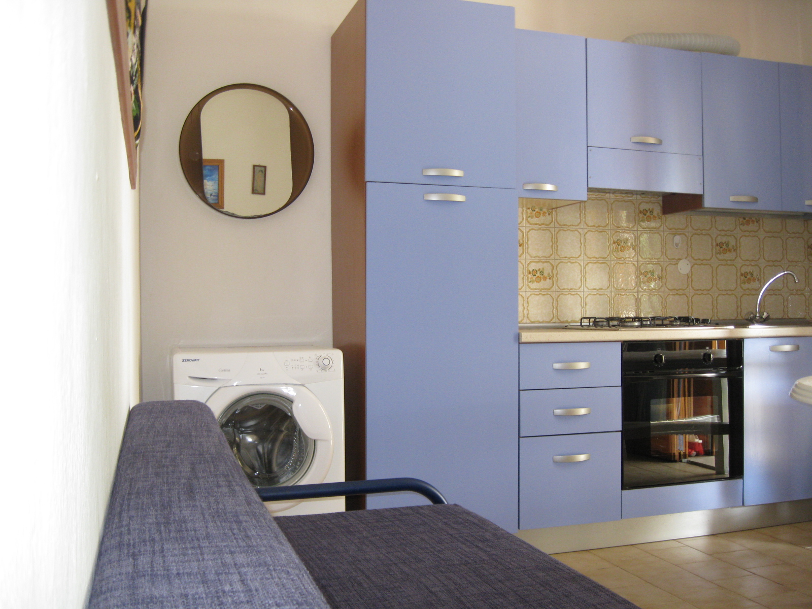 Appartamento al PIANO TERRA (5/6 persone) composto da: bel giardino privato e recintato, ampio patio coperto con barbecue, soggiorno con angolo cottura e divano letto, disimpegno, bagno, camera da letto matrimniale, seconda camera con letto a castello.